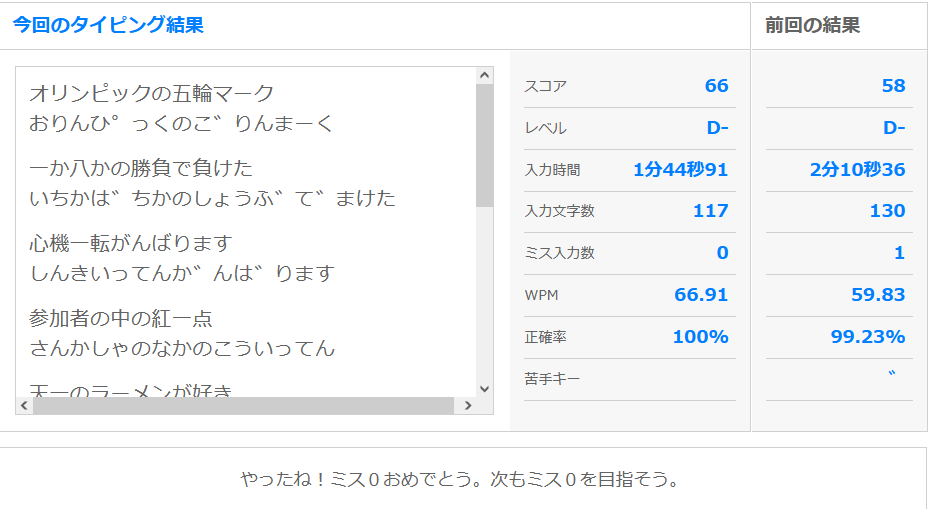 ふだんの入力はまだローマ字で行っていますが、考えている言葉とタイピングの言葉のスピードがリンクしてくるようになれば、ふだんの入力をカナに切り替えようとおもってます。