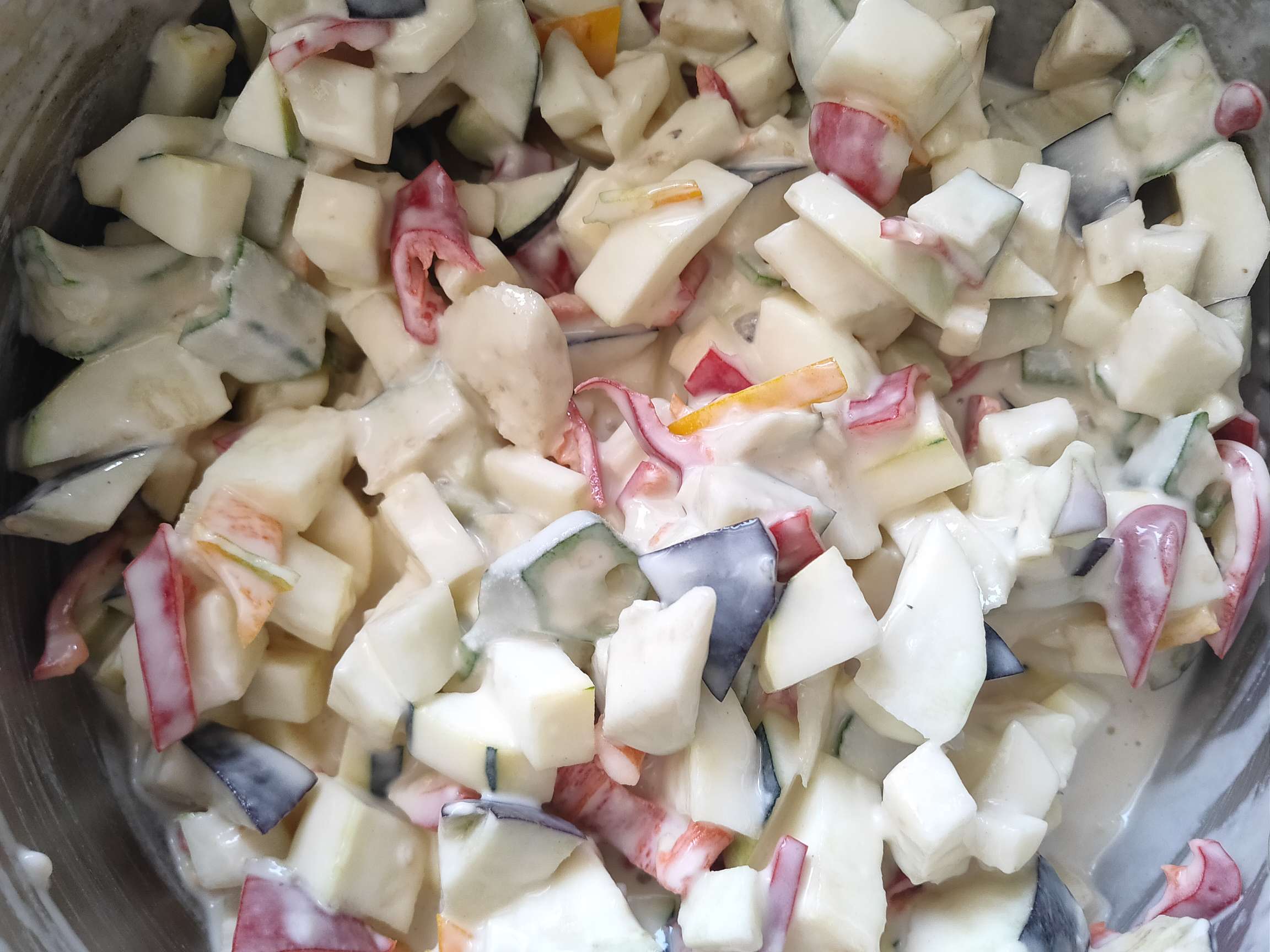 ここに前回まききれなかった種を1~2粒ずつまいて、秋ズッキーニの種5袋ぶんをすべて消費します。